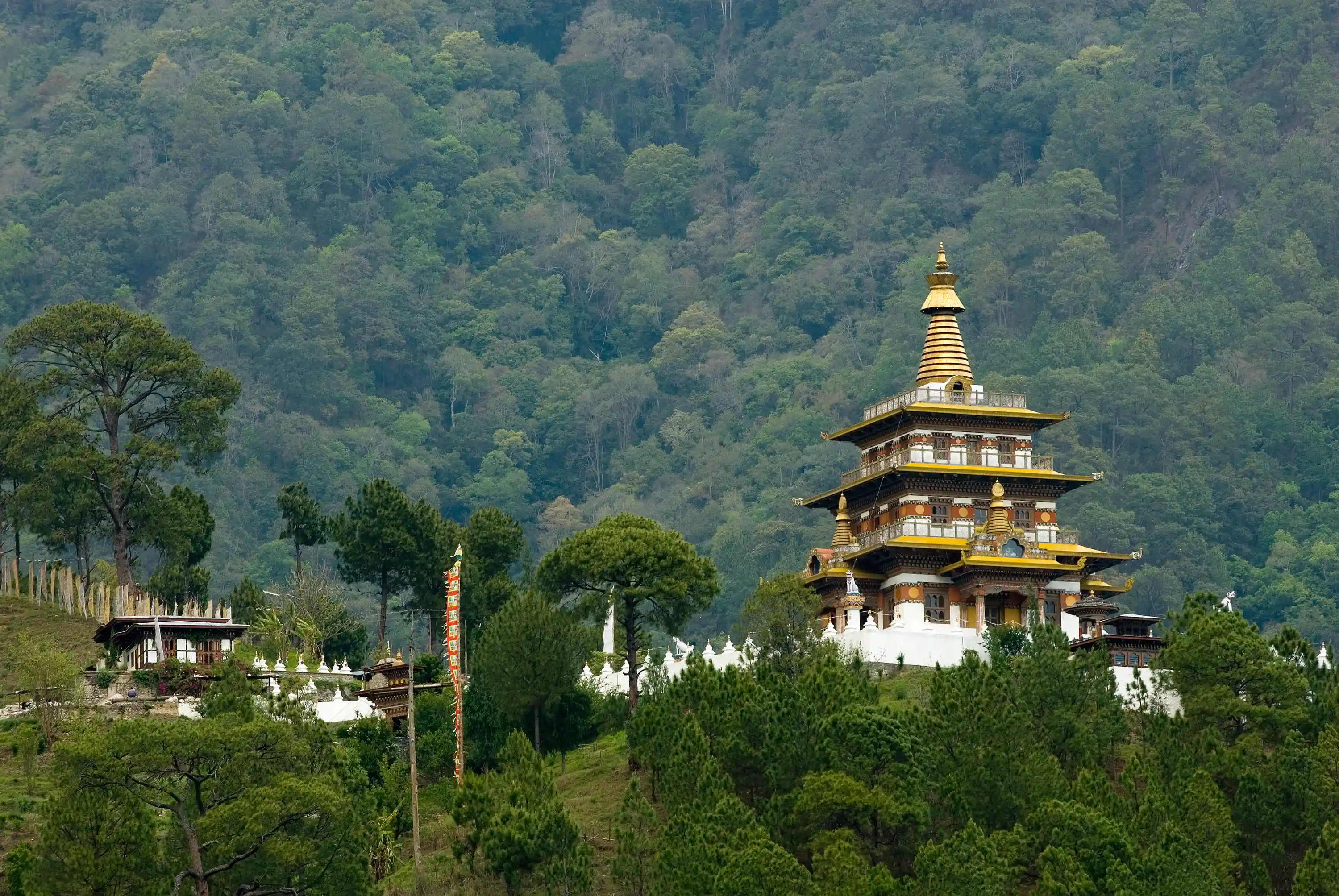 Bhutan is a small, landlocked nation located in the eastern Himalayas between India and China. Its landscape ranges from subtropical plains and forests in the South to subalpine forests and snowy mountains in the North. Bhutan is a predominantly Buddhist country and is known as the last stronghold of Mahayana Buddhism.